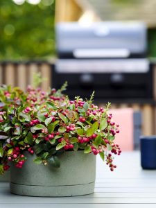 Het eerste wat opvalt aan bergthee zijn de prachtige bessen en sierlijke bladeren. De bessen, die voortkomen uit de bloemen die ‘s zomers bloeien, zijn rood, roze of wit en blijven tot het voorjaar aan de plant. Bergthee is een winterharde bodembedekker die in de volle grond in de breedte groeit. Bergthee staat echter ook prachtig in bakken en potten op het terras of een balkon. Ook niet onbelangrijk: de rode bessen geven je een instant herfstgevoel!