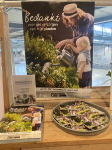Vanaf deze week is de campagne ‘Bedankt voor het verzorgen van mijn planten’ gelanceerd. Er zijn bloemenkaarten en banners gemaakt in een variant met kamerplanten en een variant met tuinplanten. Deze campagne is uitgebreid met posters in de formaten A3 en A1. Ook is deze campagne beschikbaar in het Duits.