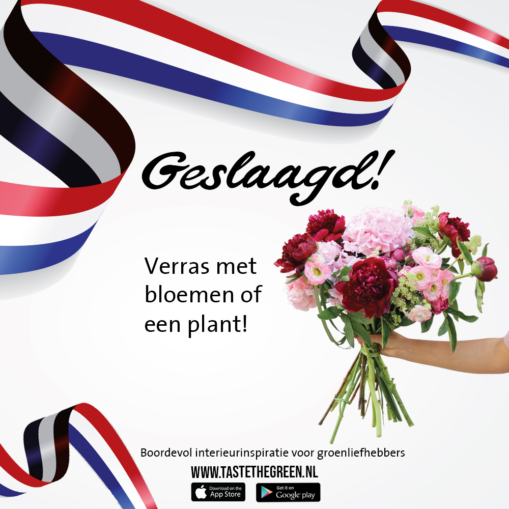 Niet veel later, in juni dit jaar, was de campagne ‘Geslaagd‘. Met deze campagne stimuleerden we de consument om bloemen of een plant te kopen voor alle eindexamen deelnemers die hun diploma hadden behaald. De boeketkaarten werden vol enthousiasme aangenomen door onze inkopers! Deze campagne was weer een groot succes.