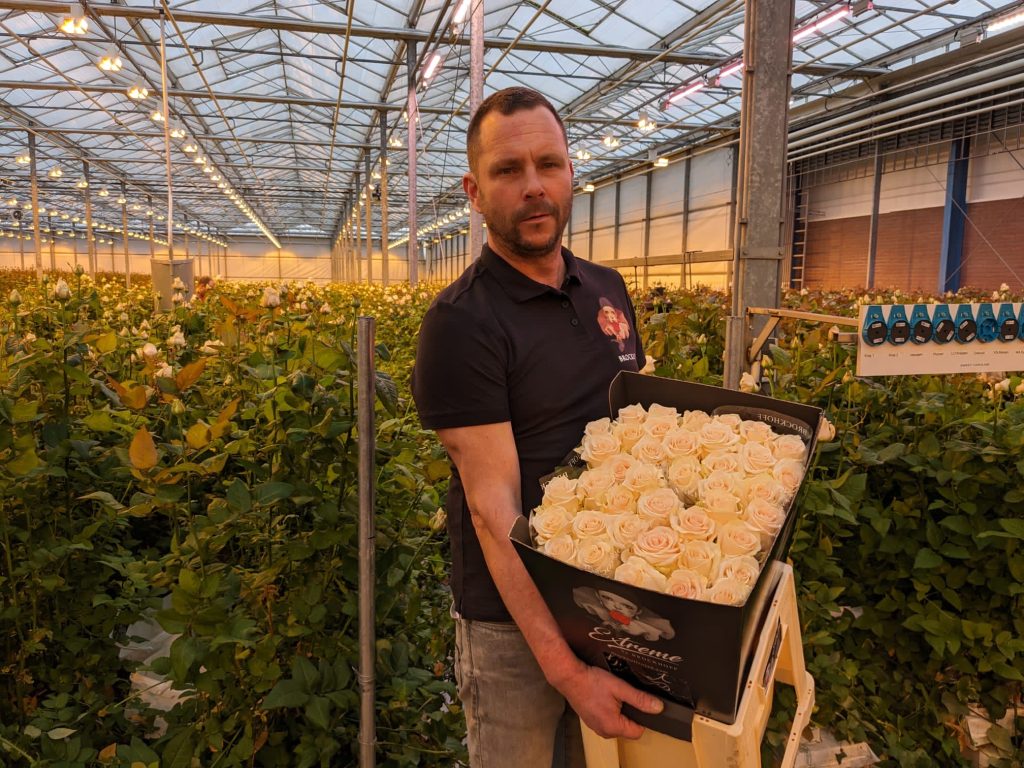 Bram runt het bedrijf samen met zijn broer Simon. Ze telen op 5,5 hectare de Avalanche+. De vuistdikke rozen zijn al open als ze het bedrijf verlaten, maar staan ook dan nog minstens 14 dagen op de vaas.