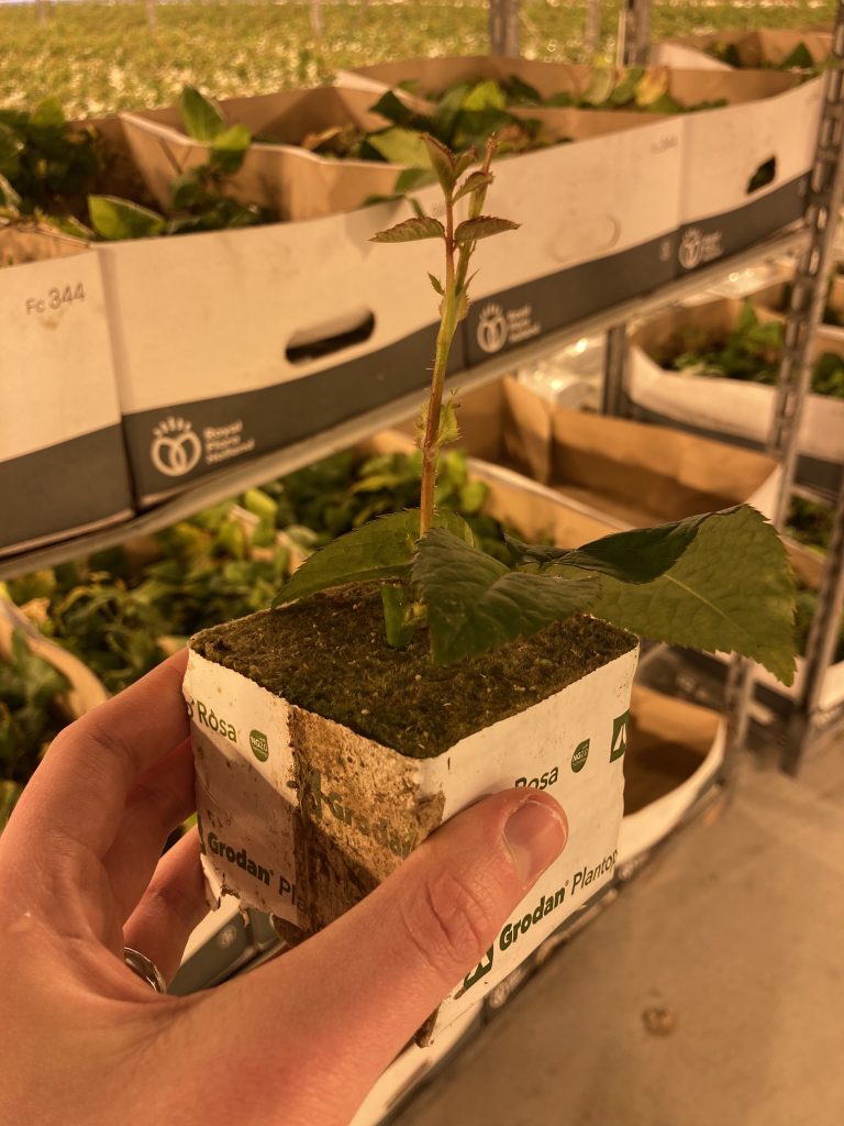 Voor het ontwikkelen van een nieuwe roos, heeft een veredelaar 5 tot 6 jaar nodig. De productie is kleinschalig begonnen. Om op te kunnen schalen naar 9.000 meter, hebben ze een half jaar de tijd nodig gehad om genoeg planten te krijgen en alles vol te kunnen poten.