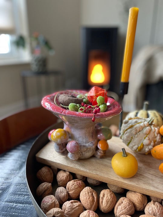 Ook hebben we alvast wat herfst decoratie in huis gehaald, zoals dit sprookjesachtige paddenstoeltje van Des Pots. Net zoals de vazen van hen is ook dit weer een echte eyecatcher. Geen vaas dit keer, maar een echt sierobject van keramiek.