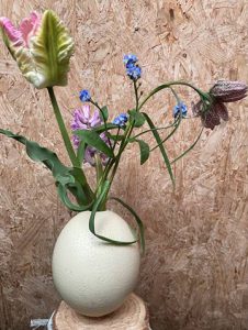 Voornamelijk in het voorjaar zijn Narcissen, Tulpen, Anemonen en Ranonkels volop in bloei. Ze staan leuk in allerlei verschillende vaasjes of juist in leuke vrolijke gekleurde potjes. Natuurlijk in zijn geheel op verschillende plekken verwerkt met eitjes, of je gaat de creatieve kant op met kapotte eischaal snippers en veertjes.