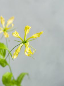 Diese weibliche, offene, zerbrechliche und exotische Blume passt perfekt zum Gefühl eines schwingenden Sommerkleids. Die Blüte der Gloriosa legt ihr Innerstes frei und gibt die Energie, die sie ausstrahlt, voller Zuneigung weiter. Der botanische Name bedeutet glorreich und berühmt. Die Blume wird auch Ruhmeskrone oder flammende Lilie genannt, weil die Blütenblätter an lodernde Flammen erinnern. Sie lässt sich daher auch wunderbar floristisch arrangieren: Vom außergewöhnlichen japanischen Blumenkunstwerk bis hin zum Jugendstil-Look ist mit der Gloriosa fast jeder Stil möglich.