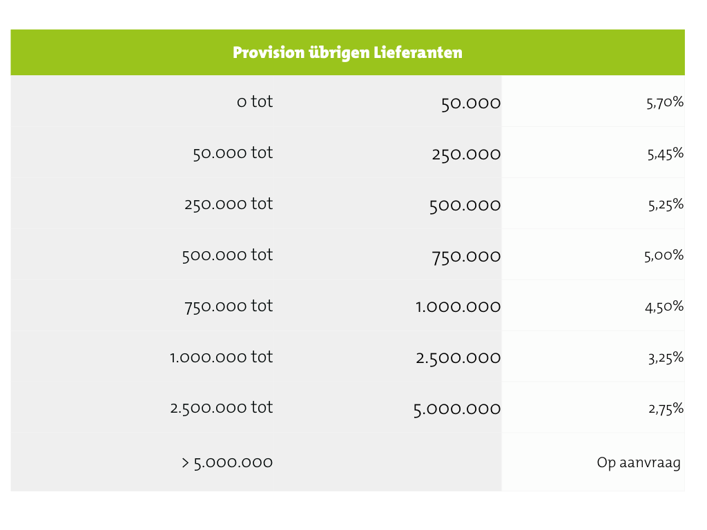 Eine Provision wird nach einem gestaffelten System auf den kombinierten Produktumsatz an der Versteigerungsuhr und bei der Vermittlung erhoben: