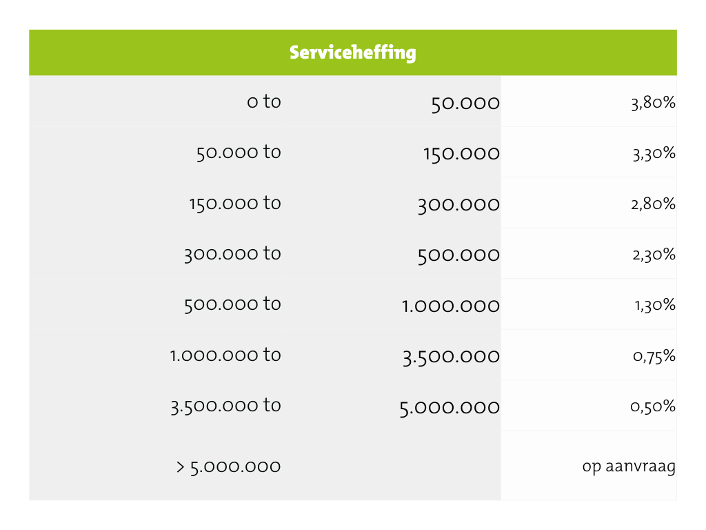 Over de gecombineerde productomzet bij klok en bemiddeling wordt middels een schijvenstelsel serviceheffing in rekening gebracht: