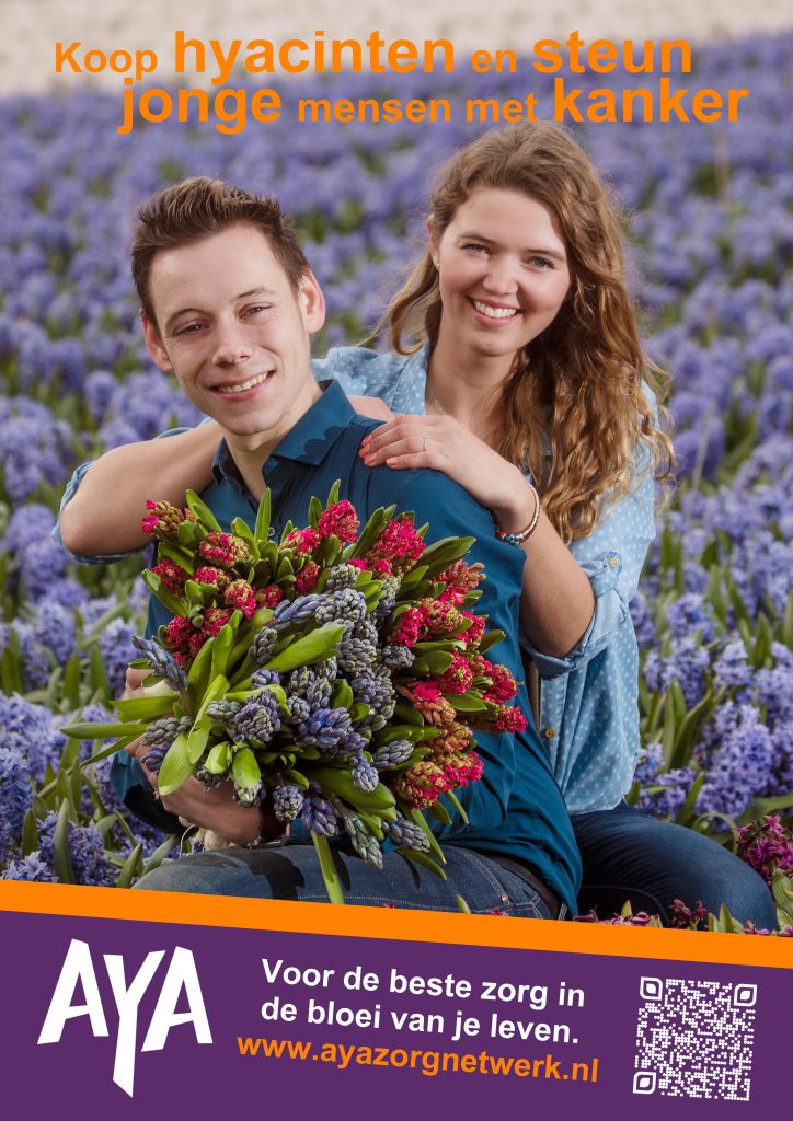 Voor de 9e keer organiseert het AYA ‘Jong & Kanker’ Zorgnetwerk samen met de Nederlandse hyacintenkwekers de ‘hAYAcinten’ actie. Op vrijdag 27 januari staat in 22 ziekenhuizen een hyacinten kraam. Bij filialen van Ranzijn tuin & dier zijn potjes hyacinten te koop. De opbrengst gaat naar zorg voor jongvolwassenen met kanker, ofwel: AYA’s (adolescents & young adults).