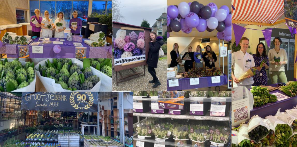 Op 26 januari jl. was het zover. Het 10e jaar van de Hyacinten voor AYA actie. In de hal van 25 ziekenhuizen door heel Nederland werden kleurige bossen Hyacinten verkocht. Ook voor dit lustrum jaar hebben de Nederlandse hyacintenkwekers zich weer belangeloos ingezet. Zij hebben hun prachtige HAYAcinten geschonken aan de AYA ‘Jong & Kanker’ Foundation. AYA staat voor adolescent & young adult: jongvolwassenen die tussen hun 18e en 39e te horen krijgen dat ze kanker hebben.