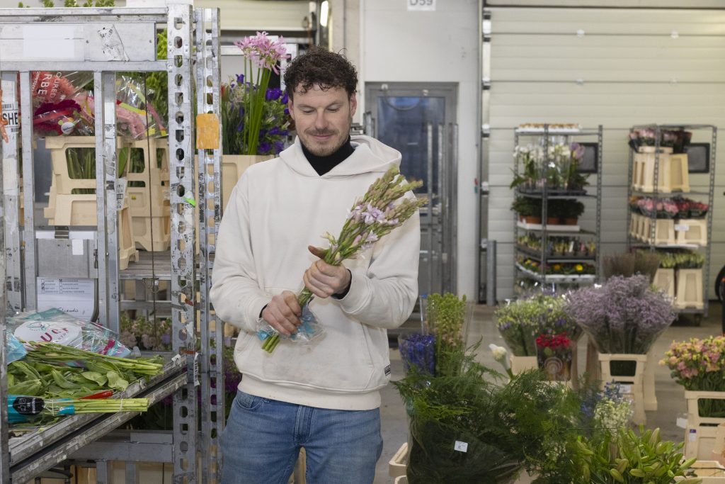 Sinds zijn twintigste staat Wessel in de bloemenwinkel. Hij heeft na zijn schooltijd nog even in de bouw gewerkt. Maar na anderhalf jaar met tegenzin om half zes opstaan, erkende hij dat hij de bloemensector miste. “Nu sta ik nog vroeger op, maar dat vind ik niet erg.” Vanaf het moment dat hij door zijn vader werd meegenomen naar Plantion vond hij het leuk om op de klok in te kopen. Wessel: “Je moet weten wat je klanten willen, maar daarnaast ook je gevoel volgen. Op de tribune kijk ik altijd goed om me heen. Wanneer het druk is, weet ik dat ik snel moet zijn. Ik wil leuk en niet te duur inkopen, zodat ik het ook weer leuk kan verkopen.” Om tijd te besparen, maakt hij ook geregeld gebruik van Kopen op Afstand. “Dan zit ik met drie schermen voor me en kan ik alles goed zien.”