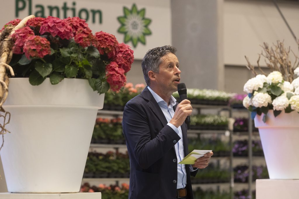 Na de ledenvergadering gaf René Willemsen het woord aan Ivo Putman, de energieke presentator van het tv-programma De Grote Tuinverbouwing waar Plantion mee samenwerkt. Voor Plantion is Ivo het gezicht van de sierteelt; hij vertaalt de liefde en passie van kwekers naar de consument. Dat doet hij bijvoorbeeld met de ‘Parel van de maand’, waarin een maand lang één bepaalde plant centraal staat. Plantion geeft hiermee het positieve verhaal een breed podium en ondersteunt haar inkopers in de verkoop van bloemen en planten.
