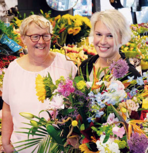 Moeder en dochter zijn aan elkaar gewaagd en vormen een sterke combinatie. Een duidelijke rolverde-ling zorgt volgens Suzanne voor een soepele samenwerking. “Bea is van het buitenspul, ik regel alles binnen. Dat weten de meiden die hier werken ook. En komt ze dan toch binnenstormen voor het een of ander, dan stuur ik haar weer naar buiten, haha.” De 30-jarige Suus is gespecialiseerd in boeketten, bruids- en rouwwerk. “Vooral dat laatste is mooi om te mogen doen. Dat je op deze manier kan bijdragen aan iemands afscheid.” Ook vragen mensen haar regelmatig om hulp bij het maken van een groenplan voor in huis. “Dat creatieve, dat vind ik echt het leukste aan het vak. En door onze samenwer-king met Antoine en Anke, beide van ’s Heeren Loo, is er toch ook dat maatschappelijke tintje waar ik destijds al voor wilde gaan.”